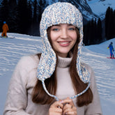 A beanie with chunky ribbed stitches that looks cozy and expressive at the same time. The elongated earflaps provide extra warmth, wrapping around the ears and cheeks. The ties allow it to easily adapt both to your mood and the weather, since you can tie them on top of the beanie or simply leave them undone.